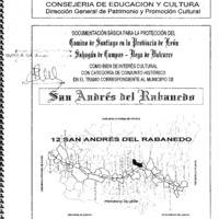 Documentación básica para la protección del Camino de Santiago por el término de San Andrés del Rabanedo. Se compone de: - Texto sore el Camino de Santiago en la provincia de León y el Camino Francés - Anexo con Estadística, Recorrido del Camino por el término municipal, Normativa general y los elementos monumentales en este término. - Planos del término municipal (plano A12-1/Escala 1/50.000), del sector rural (plano A12-2/Escala 1/10.000), municipio resumen (plano 12-3-R/Escala 1/25.000), del núcleo urbano de Trobajo del Camino (plano 12-3. Hoja 1/Escala 1/2.000) y del núcleo urbano de Trobajo del Camino (plano 12-3. Hoja 2/Escala 1/2.000).