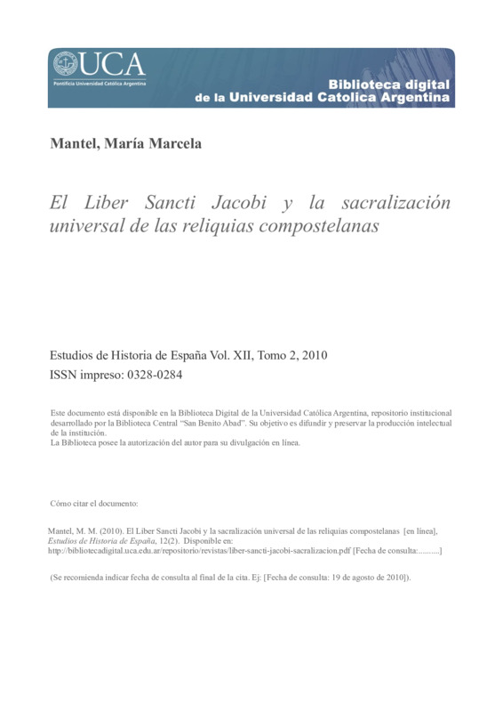 El Liber Sancti Jacobi y la sacralización de las reliquias compostelanas